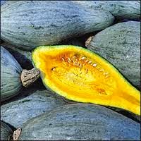 Here’s how I enjoyed the fruit this week with a friend for lunch: I halved the squash with a serrated knife, scooped out the seed (and saved it of course…Sibley is open pollinated so the seeds will come up true to type next year) and baked until soft at 350 degrees. I let cool to handle, and then spooned out the flesh into a Cuisinart with some low fat unflavored yogurt and a quarter cup of walnuts. I tossed in a couple cloves of garlic, salt, pepper and a quarter of a jalapeno for heat, and pureed. I reheated just before serving and once in bowls I topped with bread crumbs and shredded parmesan cheese, and used a kitchen torch to toast and melt the cheese at the table.