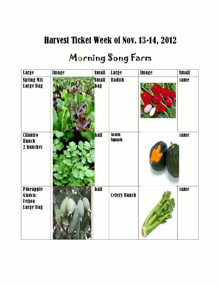 The Acorn Squash this week is among my favorite veggies to work with this time of year. There’s muffins and soups, casseroles, pies and stir fries. Such a versatile gem! I’ll include a few recipe ideas this week, and encourage you to share yours with us as well!